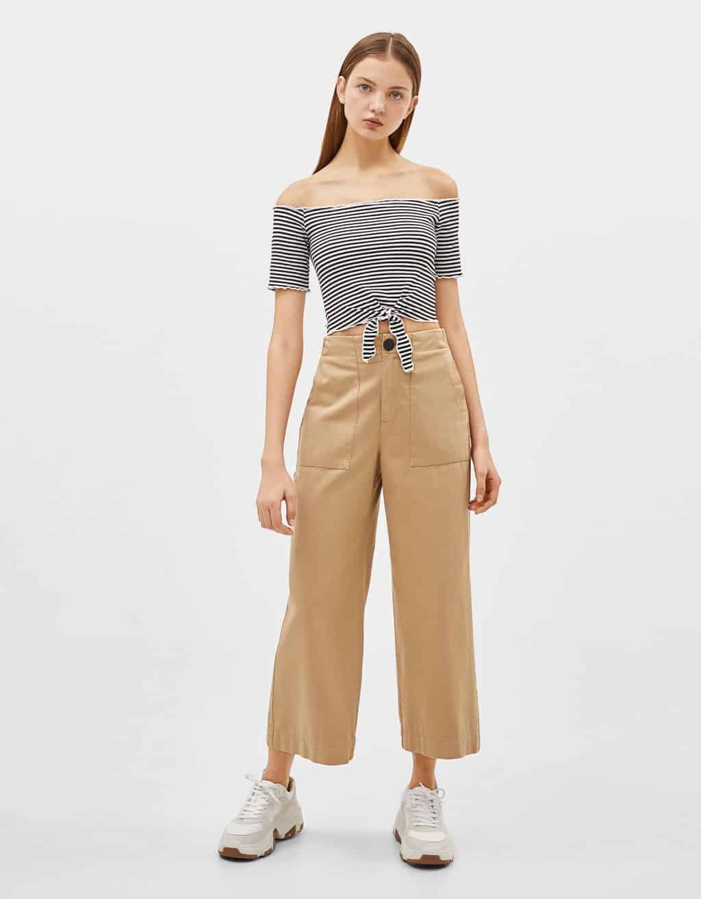 – Material: Black/Brown:100% Rayon. Others:Polyester. Ruffle Waist Belted Peg Pants.